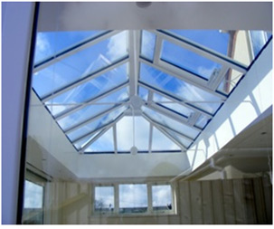 The image shown is the orangery plasterline coupled with visual masking on the outside so that the plaster board internals are not visible from upstairs rooms.